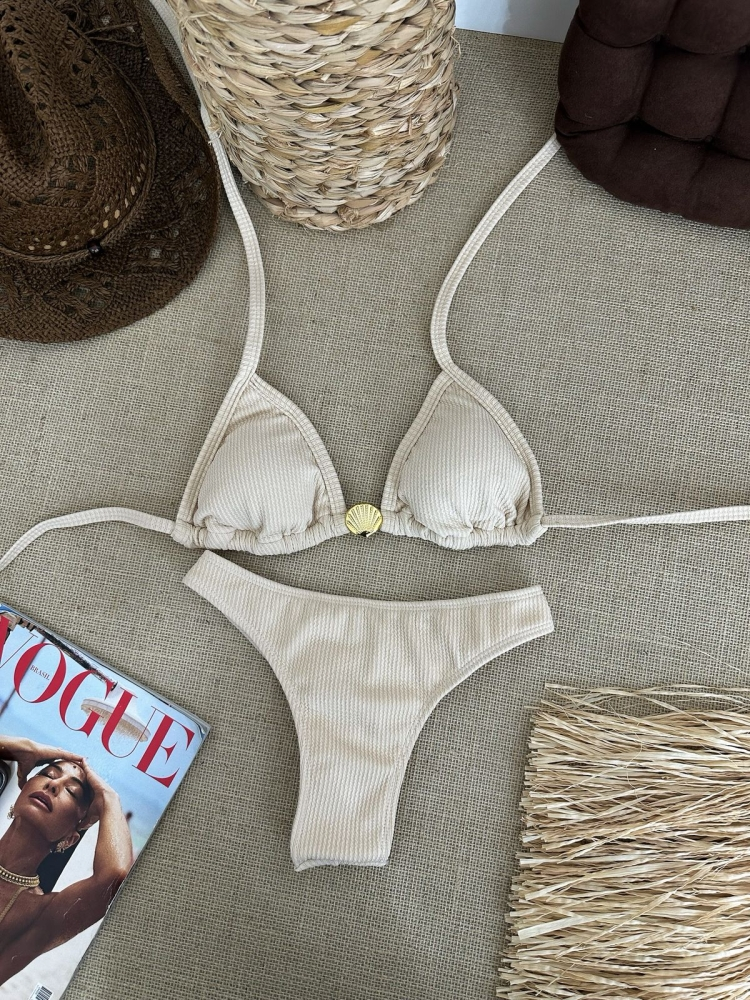 Biquíni Top Cortininha/ Calcinha Asa Delta (semi-fio)- Concha Areia
