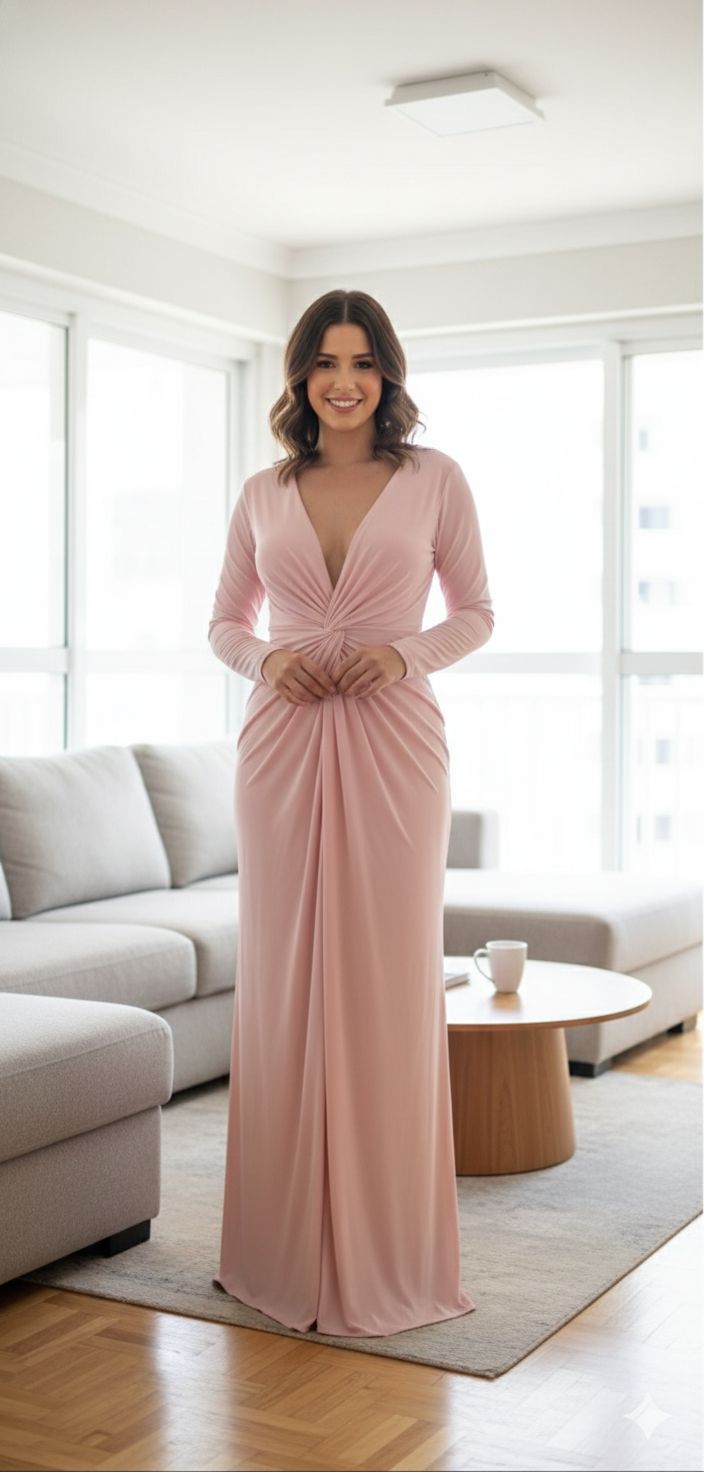Sofisticação que impõe presença. O Vestido Dubai destaca-se pelo decote em V e pelo drapeado central, que valoriza a silhueta com elegância e equilíbrio. Confeccionado em tecido fluido e confortável, é a escolha ideal para ocasiões especiais que exigem postura, feminilidade e um toque de luxo atemporal.
